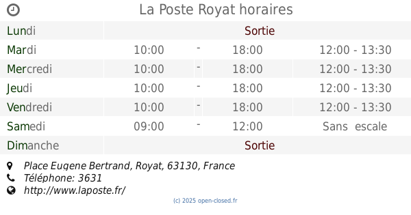 Please note that the information for La Poste Dans Royat, Place Eugene Bertrand and all other Branches is for reference only.